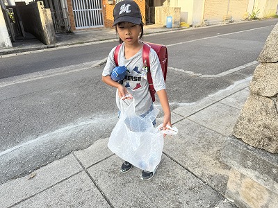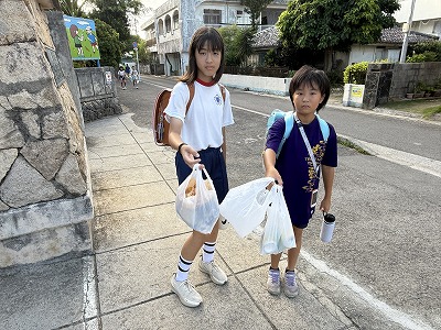 今日は2年生の児童がゴミ拾いをしながら登校してくれました~(^^)/ 本当にありがとうございます♪