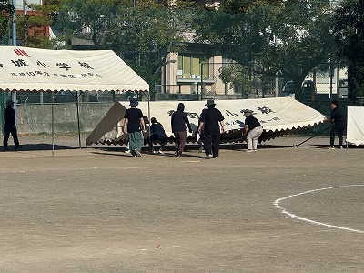 さて、こちらは昨日の放課後、本校職員みんなでテントを組み立てている様子です♪