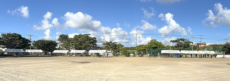 先生方は、児童の皆さん一人ひとりが最高の舞台で輝けるように、テントの配置を考えたり、ロープで固定したりと、細かいところまで気を配って準備してくれました。