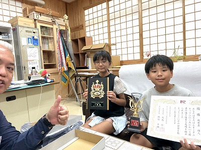 続いて、こちらは5年生の玻座真さんと、銘苅さんが受賞の報告に来てくれました♪