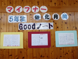 1階中央廊下や各学年の掲示板には、グッドノートが掲示されています。お友達の学習の様子も参考にしてみてください。