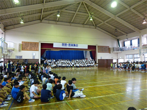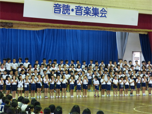 今朝は、体育館で10月の「音読・音楽集会」が行われました。