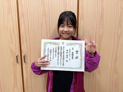 さて、こちらも同じく今日の昼休み時間に4年生の仲盛さんが受賞の報告に来てくれました♪