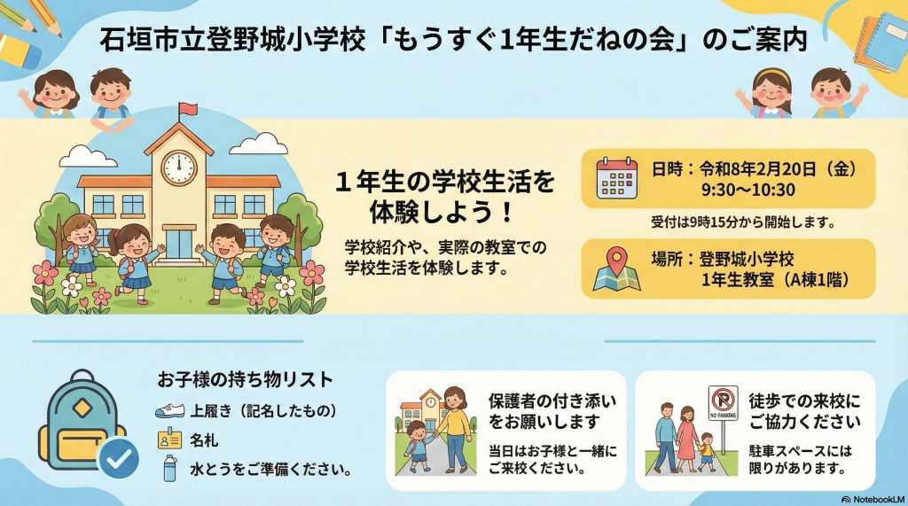 もうすぐ1年生だねの会のお知らせ