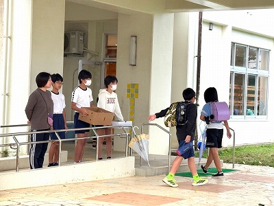 今朝の登校風景です♪ 週明けの登校ですが、児童の皆さんは元気よく登校しました♪
