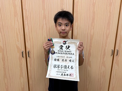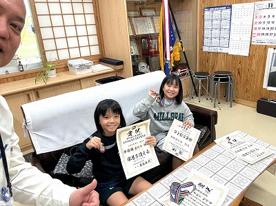 さて、こちらも同じく今日の昼休み時間に4年生の仲盛さんが受賞の報告に来てくれました♪