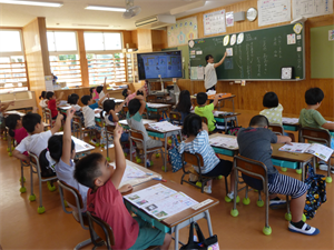 1年生の教室では、ひらがなの学習が行われていました。