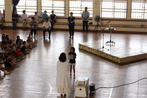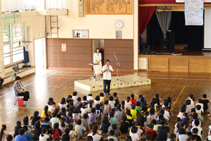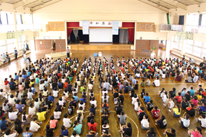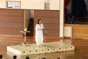 うだるような暑さの体育館でしたが、国吉なおみさんの清らかな歌声に心が温かくなったひとときでした。国吉なおみさん、ありがとうございました。