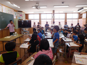 10日(木)は、初任者研修の代表授業「道徳」が4年生の教室で行われました。「雨のバスていりゅう所で」という教材で、よりよく生きるためにはどうすればいいのか、きまりやマナーを守ることのよさについてみんなで考えました。