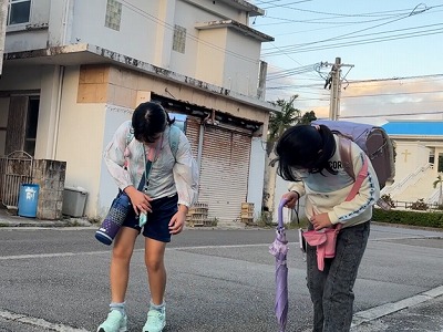 お知らせです。週末にあたりまして、「安心・安全な毎日を過ごす」ために、親子でご確認をよろしくお願いします。 ※こちらをクリックして、ご確認ください → 学校からのお知らせ・・・・・・・・・・・・・・・・・・・・・・・・・・・・・・・・・・・・・・・・・・・・・・・・・・・・・・・・・・・・・・今朝の登校風景です♪ 今日も少し肌寒中、児童の皆さんは元気よく登校しました♪ いつもさわやかなあいさつと、ステキな笑顔をホントにありがとう~(^^)