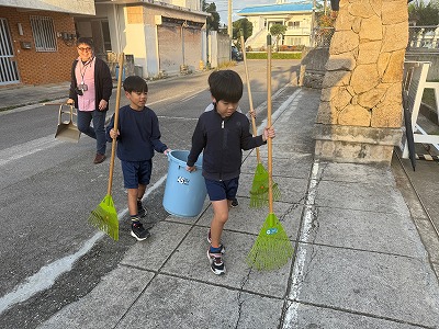 朝のエージェンシータイムで清掃活動を行う児童&職員の皆さんです♪ 今週もよろしくお願いしますね(^^)/ 正門横の看板も12月バージョンにアップデートしました♪ 取り替えをしてくれた外間先生&前田先生、ありがとうございました(^^)/