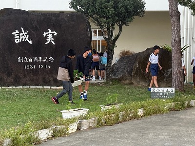 低学年(1・2年生)のめあて①自分でおむすびを作ってみよう②おうちの人と話し合って、お弁当の中身を決めよう③一緒に買い物に行こう。中学年(3・4年生)のめあて①自分でおむすびを作ろう②おうちの人と一緒に献立を考え、買い物や調理に挑戦しよう高学年(5・6年生)①おむすびやおかず作りに挑戦しよう。②献立を考え、買い物・調理・盛り付けまで自分でできることを増やそう。本日の「お弁当の日」を迎えるにあたりまして、保護者の皆様のご協力、誠にありがとうございましたm(__)mお陰様で子どもたちと一緒に楽しい時間を過ごすことが出来ました♪ 引き続きどうぞよろしくお願いします。 さて、こちらは今日の昼休み時間に、2年生の熊谷さんと新垣さんが受賞の報告に来ていました♪第35回八重山地区少年少女空手道選手権大会に出場し、熊谷さんは小学2年男子個人形の部で第3位、新垣さんは小学2年男子個人組手の部で第3位になりました!本当におめでとうございます♪ これからも自分らしく空手を楽しんでくださいね(^^)/ 今日の6校時、クラブ活動の時間に「地域クラブ」の講師として、石垣市文化財指定宮鳥御嶽(メートゥルオン)の神司 小川 喜美江 様を招聘し、「豊年祭」についてのお話をしていただきました。 実際に豊年祭で使用する着物や、貴重な道具等も紹介していただきました。 子どもたちからの質問にも、分かりやすく説明をしていただきました♪ 最後に6年生の森田さんよりお礼の言葉を述べ、感謝の意を伝えていました♪ その感謝の言葉に、講師の小川様も感動していました。小川様、本日は地域クラブの子どもたちのために、貴重なお話をしていただき誠にありがとうございました。子どもたちに、豊年祭が「なぜ行われるのか」という深い問いを、神司という立場から大変分かりやすくお話しいただきました。特に、日々の感謝や自然への畏敬の念といった行事の「心」の部分を伝えていただいたことで、子どもたちにとって、地域の文化を深く理解する、学び多き貴重な時間となりました。引き続き、地域と連携した教育活動にご協力をいただければ幸いです。本日は誠にありがとうございました。