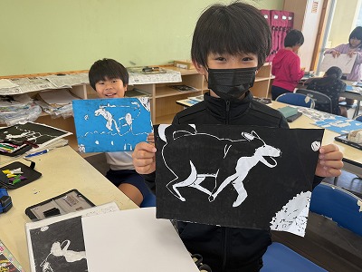 さて、ここからは授業の様子です♪4年3組、国語の授業です♪ 今日は単元テストに取り組んでいました(^^)/ 4年1組、図工の時間です♪ 「彫った後がいかされる表現」をめあてに、版画の学習に取り組んでいました(^^)/ 4年2組、体育の授業です♪ 今日は「ティーボール」の学習に取り組んでいました(^^)/