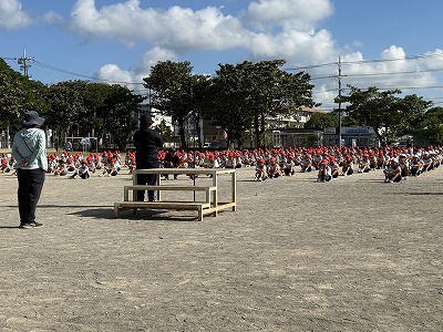 さて、こちらは体育学習発表会の全体練習での一コマです♪