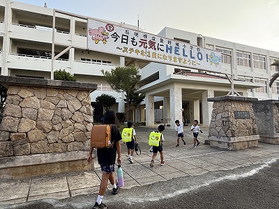今朝の登校風景です♪ 本日も児童の皆さんは元気よく登校しました♪