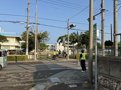 今朝も子どもたちの安全な登校のために、立哨指導を行う保護者の皆様です♪ 暑い中、いつもありがとうございます(^^)/