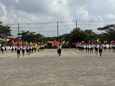 今日は1校時に体育学習発表会の全体練習(校歌ダンス・旗頭)を行いました(^^)/