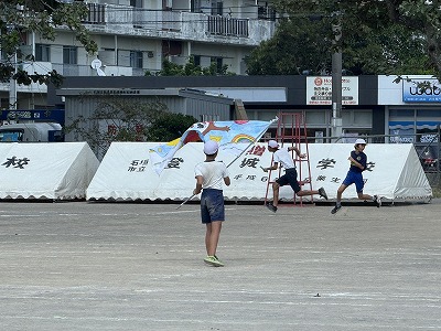 旗頭が登場すると「サーサーサーサー!」と元気なかけ声がグラウンドに響きわたりました♪