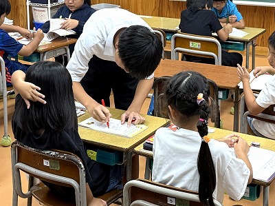 さて、ここからは授業の様子です♪今日から3日間の予定で、石垣市立石垣第二中学校の生徒9名の皆さんが、職場体験学習にやってきました♪初日は、1年生、2年生、特別支援学級の子どもたちと一緒に過ごしました♪昨年度の本校卒業生ということで、3日間、後輩たちのためによろしくお願いしますね(^^)/