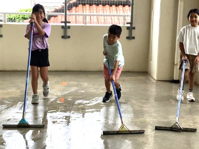 さて、ここからは授業の様子です♪こちらはグラウンドで最後の仕上げをする4年生の皆さんです♪