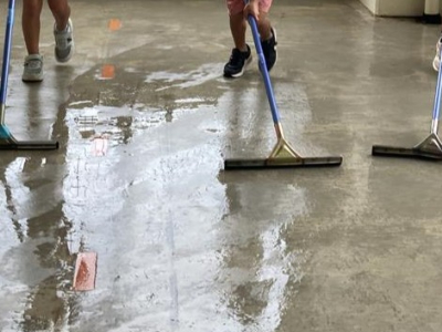 こちらは昨日の「ちょこっと良い場面」です♪昨日の大雨で水浸しになった2階A棟の玄関前を、朝のエージェンシータイムで2年3組の皆さんが一生懸命に水切りをしてくれました♪皆さんのステキな行動に感謝です♪ 本当にありがとうございました(^^)/