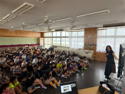 今日の5校時、「アメリカの小学校について教えて」ということで、現在、アメリカ在住で一時帰国しているローズ利加さんを講師に、3年生合同の外国語活動が行われました♪異文化を知ることが本時のねらいで、利加さんのお話に児童たちはたくさんの刺激を受けたようです♪