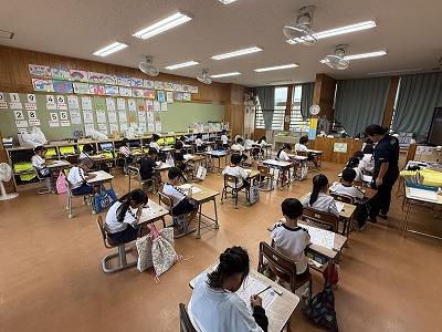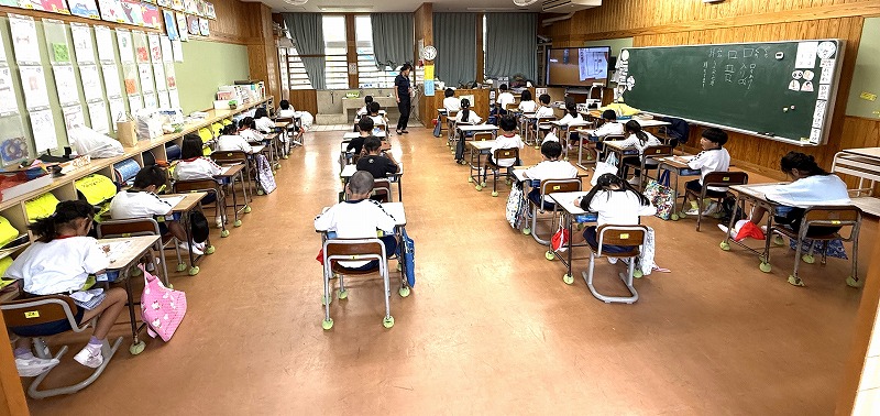 さて、ここからは授業の様子です♪1年1組、体育の授業です♪ 運動場に向かう姿を撮影しました(^^)/ 1年2組、算数の授業です♪ 「けいさん の しかた を せつめい できるかな?」をめあてに学習に取り組んでいました(^^)/ 1年3組、国語の授業です。今日は国語のテストに取り組んでいました(^^)/