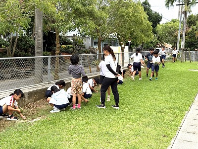 さて、ここからは授業の様子です♪こちらはグラウンドで最後の仕上げをする4年生の皆さんです♪