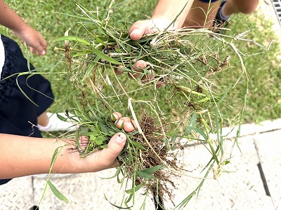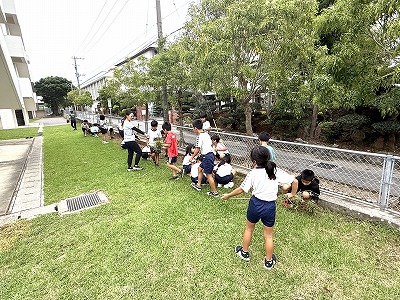 朝のエージェンシータイムで清掃活動を行う児童&職員の皆さんです♪ 暑い中、本当にありがとうございます(^^)/