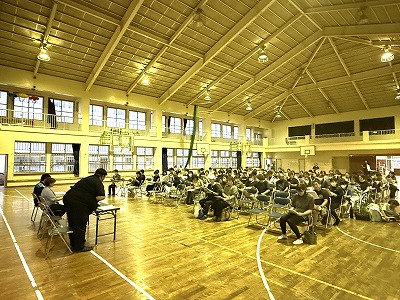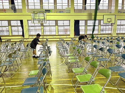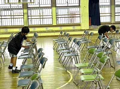 ・・・・・・・・・・・・・・・・・・・・・・・・・・・・・・・・・・・・・・・・・・・・・・・・・・・・・・・・・・・・さて、こちらは先週24日(金)に本校体育館で「修学旅行説明会」を開いた時の様子です♪6年生の保護者の皆様にご参加をいただきました♪ お忙しい中、ご参加いただき誠にありがとうございましたm(__)m ちょこっと良い場面です♪修学旅行説明会を開く前に、バスケ部の皆さんが保護者が座るイス並べと、イスの拭き掃除をしてくれました♪ 本当に感謝です♪ ありがとうございました(^^)/ ・・・・・・・・・・・・・・・・・・・・・・・・・・・・・・・・・・・・・・・・・・・・・・・・・・・・・・・・・・・・・・・