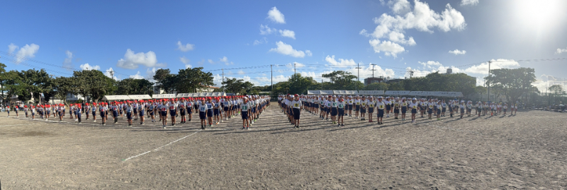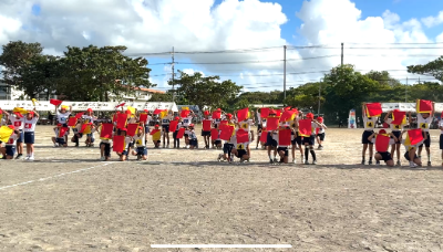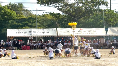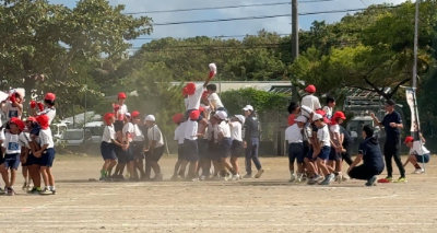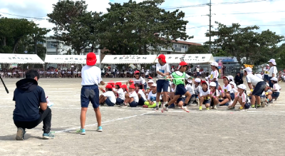 さて、児童の皆さん、そして園児の皆さん、今日の全体練習、暑い中、本当によく頑張りました♪ みんなのきびきびとした動き、そして元気な歌声を聞いて、来週の体育学習発表会が素晴らしい一日になることを確信しました♪ 体育学習発表会は、ただ走ったり、勝ったり負けたりするだけの日ではありません。 それは、みんなが練習で流した汗、友達と協力した時間、そして挑戦する勇気を、おうちの人や地域の方々に見てもらうための、最高の発表の場です♪ みんなの全力で走る姿、一生懸命に取り組む姿は、見ている人たちに大きな感動と勇気を与えます♪ さあ、来週の本番に向けて体調にも気を付けながら最後の仕上げをしていきましょう♪ みんな一人ひとりが、自分の持てる力を出し切る♪ そして、仲間を信じて、声をかけ合う♪ みんなで最高の準備をして、来週の本番、このグランドで最高の笑顔と最高の思い出を作りましょう~(^^)/