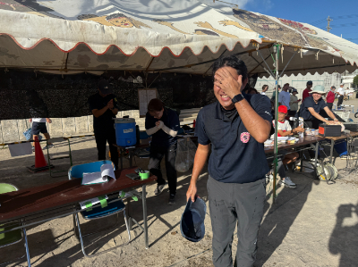 今日の天気は「晴れ 時々 くもり」、最高気温は33度、最低気温は28度(体感温度は30度)でした♪さて、こちらは昨日の放課後、本校職員みんなでテントを組み立てている様子です♪