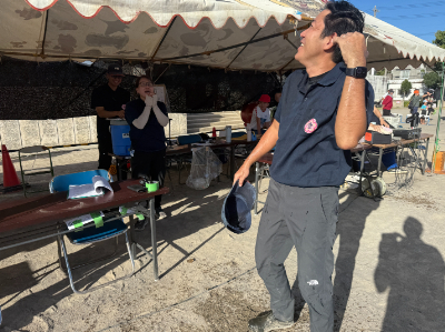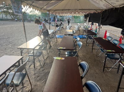 先生方は、児童の皆さん一人ひとりが最高の舞台で輝けるように、テントの配置を考えたり、ロープで固定したりと、細かいところまで気を配って準備してくれました。