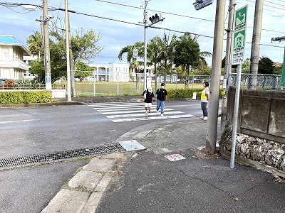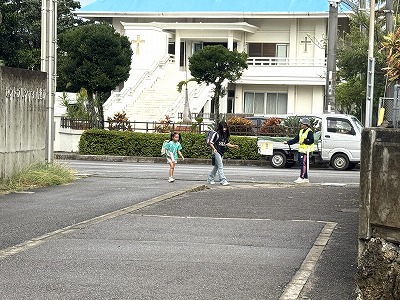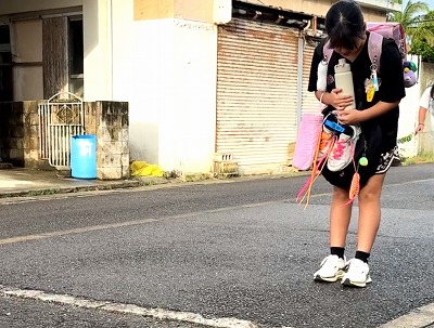 あいさつは、周りの状況を確かめる安全のサインにもなります。