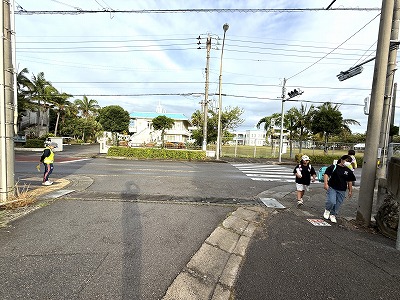 ◆動いたままのあいさつ・・・前を向いて歩いていると、相手が後ろにいる人や、横から来る車、自転車に気づきにくくなります。