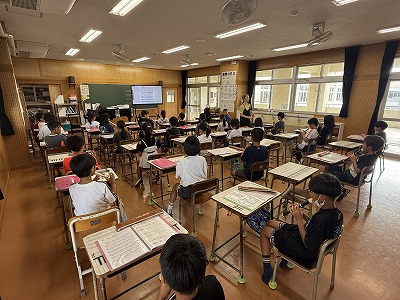 今週も思いやりのこもったキレイなトイレにしていきましょうね~(^^)/ さて、廊下を歩いていると、音楽室からステキな音色が聞こえてきました♪こちらは4年2組の音楽の授業です♪ 八重山の伝統民謡「あがろーざ節」と「鷲ぬ鳥節」をリコーダーで演奏していました♪と~っても上手でしたよ~(^^)/