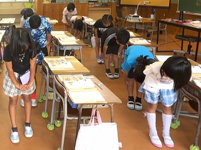 お知らせです。10月20日(月)は「体育学習発表会」の代休のため、ホームページ更新はお休みです。10月21日(火)より再開します♪引き続きどうぞよろしくお願いします(^^)/・・・・・・・・・・・・・・・・・・・・・・・・・・・・・・・・・・・・・・・・・・・・・・・・・・・・・・・・・・・今朝の登校風景です♪ 今日も太陽の強い光を浴びながら、児童の皆さんは元気よく登校しました♪ いつもさわやかなあいさつと、ステキな笑顔をホントにありがとう~(^^)/ 登校後、教室に入る前に、自分たちから進んで掃き掃除をする児童たちです♪ 本当に嬉しかったです♪ ありがとうね~(^^)/