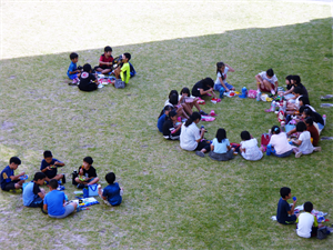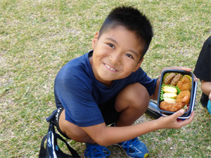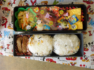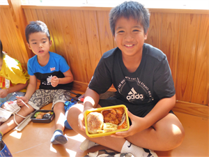 今年度、2回目の「お弁当の日」今日は、1年生と6年生が一緒にお弁当を食べたり、お友達と教室の外でお弁当を食べたり・・・。いつもとは違う給食時間に、ほほえましい交流も生まれました。自分でにぎったおむすびに、にっこり笑顔。