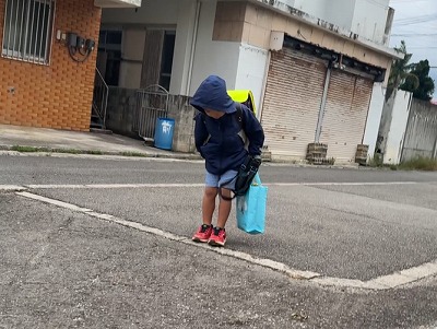 今朝の登校風景です♪ 週明けの登校で小雨の中、児童の皆さんは元気よく登校しました♪