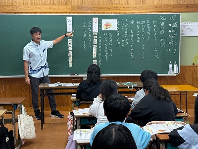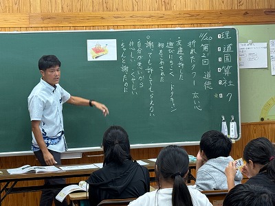 さて、こちらは5年2組、道徳の授業の様子です♪ 今日は新垣先生が教職3年研の研究授業を行いました♪