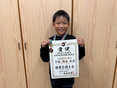 こちらは今日の放課後、4年生の上地さんが受賞の報告に来てくれました♪
