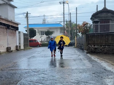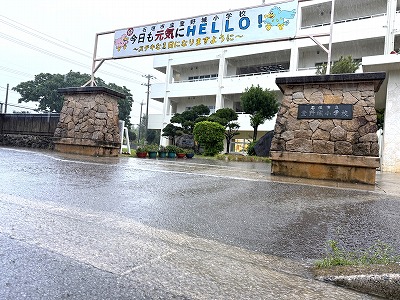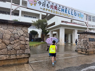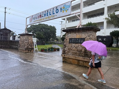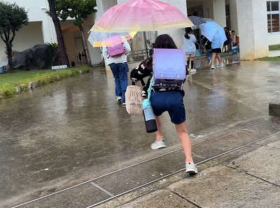 今朝の登校風景です♪ 今日は朝から大雨が降っていましたが、児童の皆さんは雨にも負けず、元気よく登校しました♪