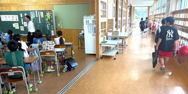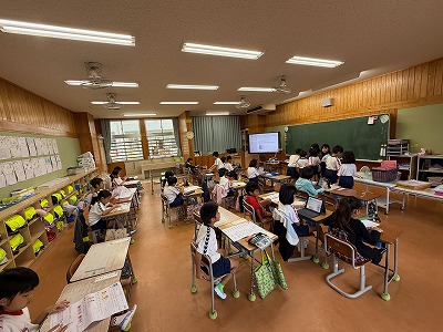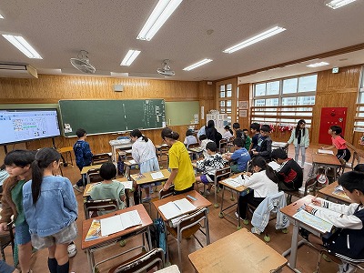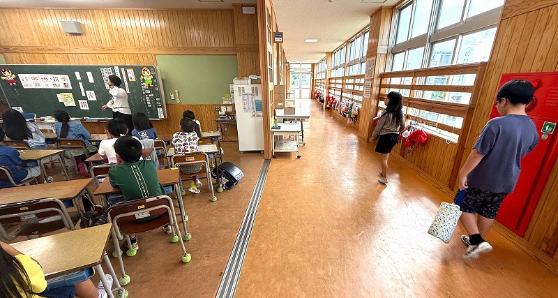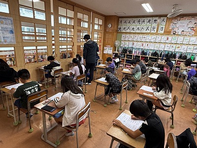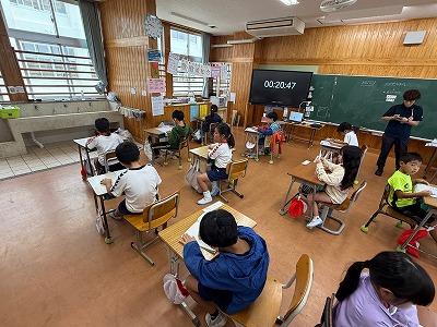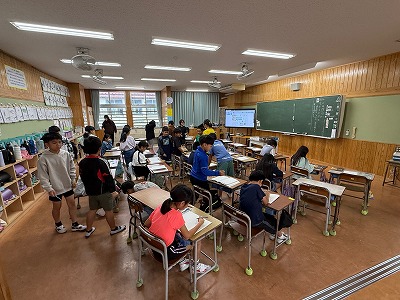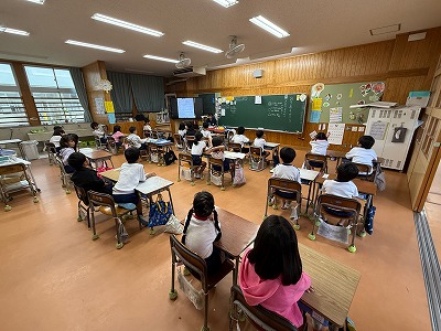 下の写真がその時の様子です♪ これは、誰に言われたわけでもなく、児童の皆さんが「相手のことを考える(例えば、3組さんが授業をしているから、静かにしよう)」という、とても大切な心を発揮した証です♪