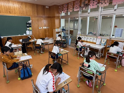 2年4組、算数の授業です♪ 4組さんも学校テストに取り組んでいました(^^)/