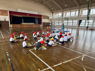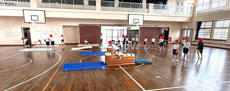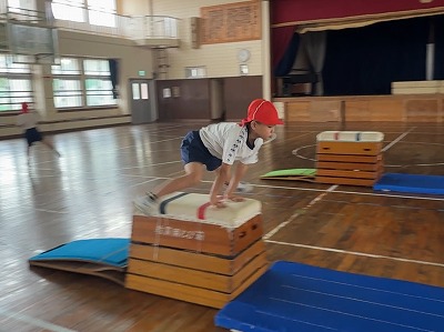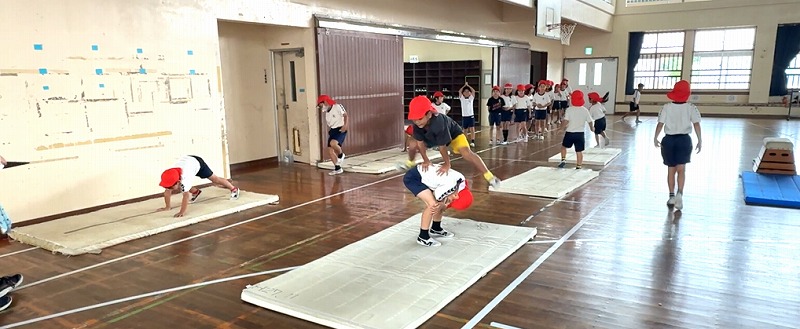 2年2組、体育の授業です♪ 今日はマット運動と跳び箱の学習に取り組んでいました(^^)/