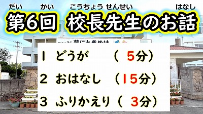 さて、今朝はオンラインを活用して、お話集会(校長講話)が行われました♪ 今年最後のお話集会ということで、今年度、子どもたちに伝えてきた大切なメッセージを、改めて一つにまとめて振り返りました。 それは、子どもたち一人ひとりの「自分と自分の未来を大切にする方法」を身につけてほしいという願いです♪
