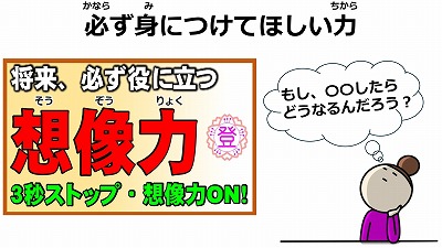 日々の生活の中で、子どもたちの成長を大変嬉しく思う一方で、感情をコントロールできずに行動してしまう例もあります。そこで、年末から新年に向けて、特に大切にしてほしい力として「想像力」を伝えました。何か行動を起こす前に、頭の中に「ストップウォッチ」を思い浮かべ、3秒ストップ!」、そして「想像力ON!」にして、「もしこれをしたら、相手はどう感じるか?」「周りの人にどんな迷惑や心配をかけてしまうか?」を立ち止まって考えるよう促しました。