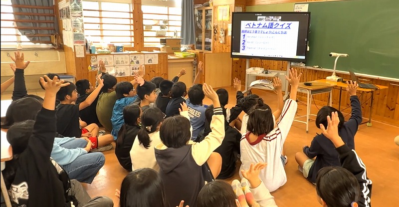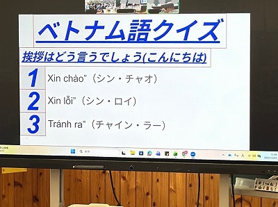 ベトナム日本人学校の児童の皆さん、本日はオンラインでの交流会をありがとうございました。 皆さんが準備してくださったベトナムの文化などについての紹介は、クイズ形式もあり、とても楽しく、有意義で学びの多い時間となりました♪ みんな興味津々で画面に釘付けでしたよ♪ 遠く離れた場所で頑張っている皆さんの様子を知ることもでき、大きな刺激を受けました。 素晴らしい時間を本当にありがとうございました♪ またお話しできる機会を楽しみにしています(^^)/
