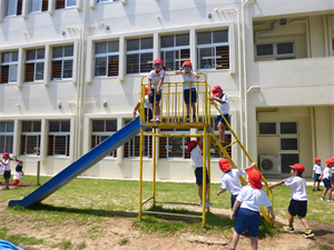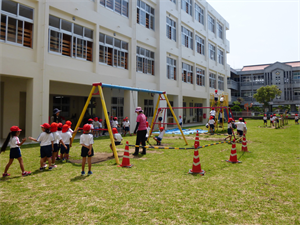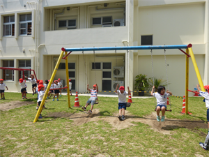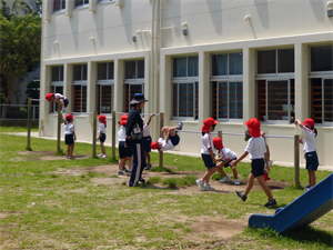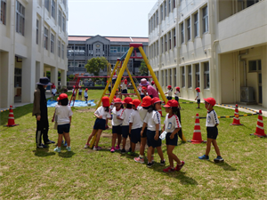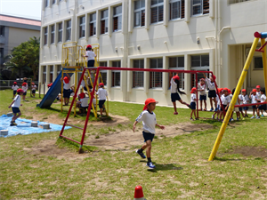 入学したばかりの1年生は、約束やマナーを守って「みんなで仲よく遊ぶ」をめあてに「遊具遊び」を楽しみました。
