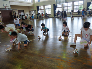 26日(火)、生活科の学習で2年生が「おもちゃランド」に1年生を招待しました。2年生が企画した「おもちゃランド」は、身の回りの材料の特長を生かし、転がしたり、飛び出したり、様々な工夫がなされていました。お店の人やお客さんになって、1年生と2年生は、一緒に楽しく遊びました。